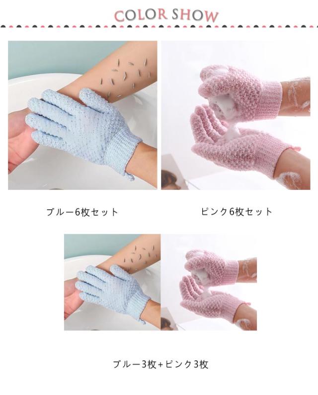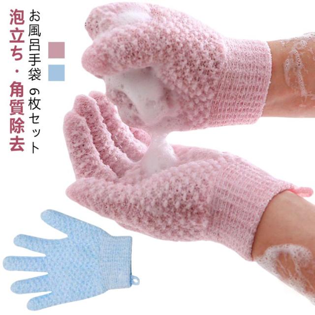 お風呂手袋 6枚セット 泡立ち 角質除去 浴用手袋 五本指沐浴 お風呂用 体洗う シャワー バス グローブ 垢すり手袋 おふろ体洗い 沐浴介助 介護用品 福祉用具 抗菌加工 両面用 入浴用品 お風呂用 家庭用 ミトン 送料無料