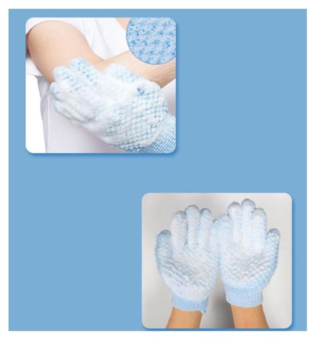 | 【お風呂手袋】【6枚セット】【泡立ち・角質除去】 手足の指の間などの細かいところもしっかり洗える手袋型タオル。 指先を使って、からだのすみずみまで、きれいに洗えます。 また、指圧マッサージも同時にでき、使用後は爽快です。 袖口は伸縮性のあるデザインで脱落しにくいです! 泡立ち機能もあり、毛穴の皮脂と汚れを清潔にする。 使用後の乾燥が早く、汚れにくく、清潔です。一般の入浴用としてはもちろん、お子さまやお年寄り、ご病人にもお使いただけます。 エスティック、全身清拭等にもご利用ください。 | |