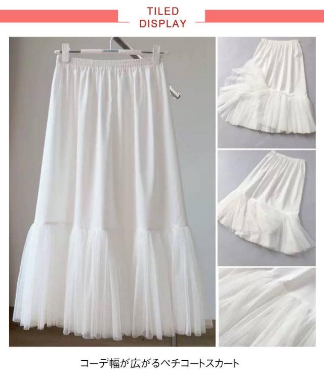 | 35cm 40cm 45cm 50cm 55cm 60cm 65cm 75cm コーデ幅が広がるペチコートスカート ウエストはゴム仕様 裾の部分はふんわりの柔らかいチュール 吸汗速乾性のあるなめらかな肌ざわりの素材 | |