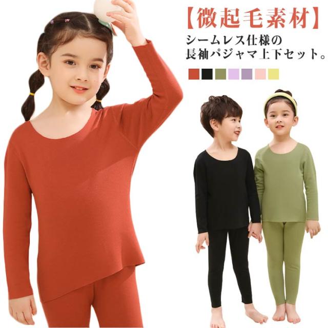 カットソー パジャマ 長袖インナー キッズ 長袖 シームレス 蓄熱 男の子 女の子 レギンス ヒートテック 子供服 上下セット tシャツ シームレス 春 秋 冬 ナイトウェア 寝間着 セットアップ ロンT 暖かい 保温 発熱 微起毛 無地 かわいい ルームウェア