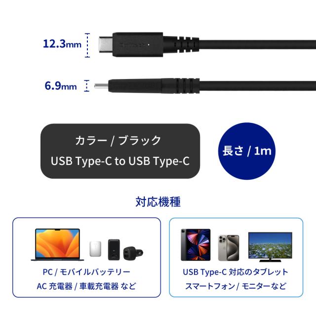 USB Type-C to USB Type-Cケーブル 1m やわらかで高速転送 最大10Gbps/PD60W充電