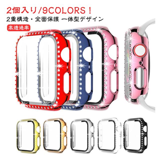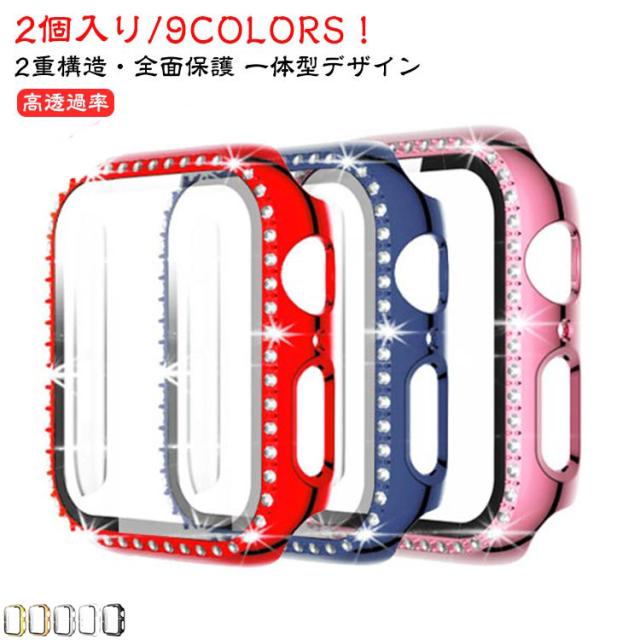 2個入 ガラスフィルム series7 カバー アップルウォッチ se 一体型 保護カバー 2個入 apple watch ケース se2 Ultra series10 series9 series8 キラキラ series6 series5 series4 series3 series2