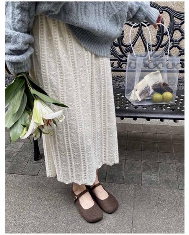 透かし編み マタニティ スカート 裏起毛 ロング レーススカート Aライン スカート ロングスカート 大人 可愛い お呼ばれ 美脚 アジャスター付き エレガント フェミニン M L XL 2XL