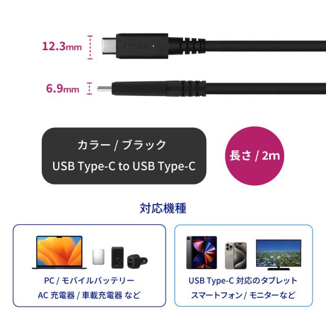 USB Type-C to USB Type-Cケーブル 2m やわらかで高速転送 最大10Gbps/PD60W充電
