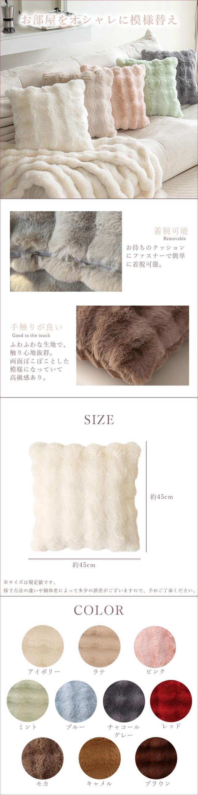| 商品 特徴 | 【着脱可能】 お持ちのクッションにファスナーで簡単に着脱可能。 【洗える】 手洗いできるので、清潔感をキープ可能です。 【手触りが良い】 ふわふわな生地で、触り心地抜群。両面ぽこぽことしたもようになっていて高級感あり。 |