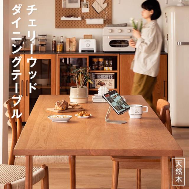 食卓 ダイニングテーブル 天然木 チェリーウッド レトロ調 テーブル ディスプレイ台 木製 北欧風 ナチュラル 木目調 広い 140×80cm 160×80cm 長方形
