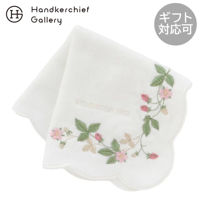 ウェッジウッド タオルハンカチ ワイルドストロベリー 刺繍 ホワイト 【WEDGWOOD】
