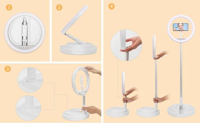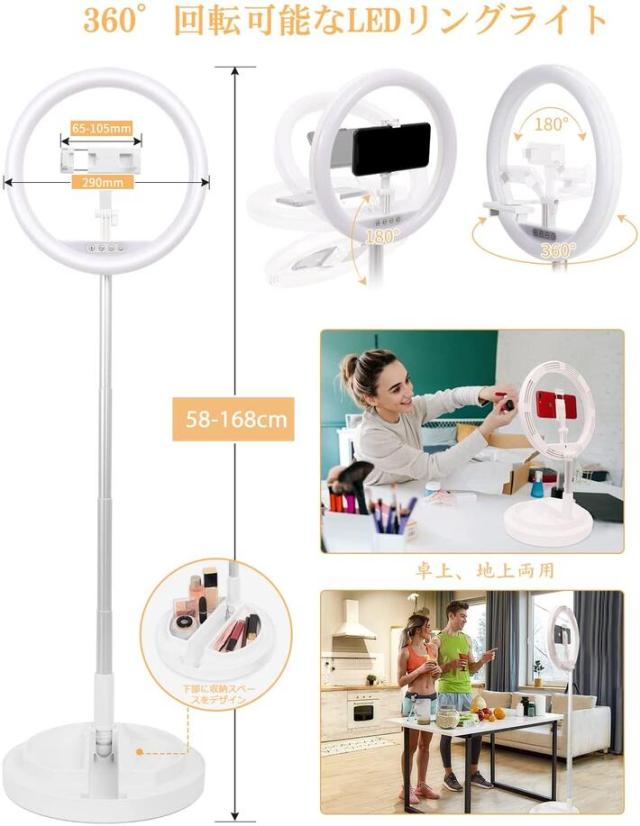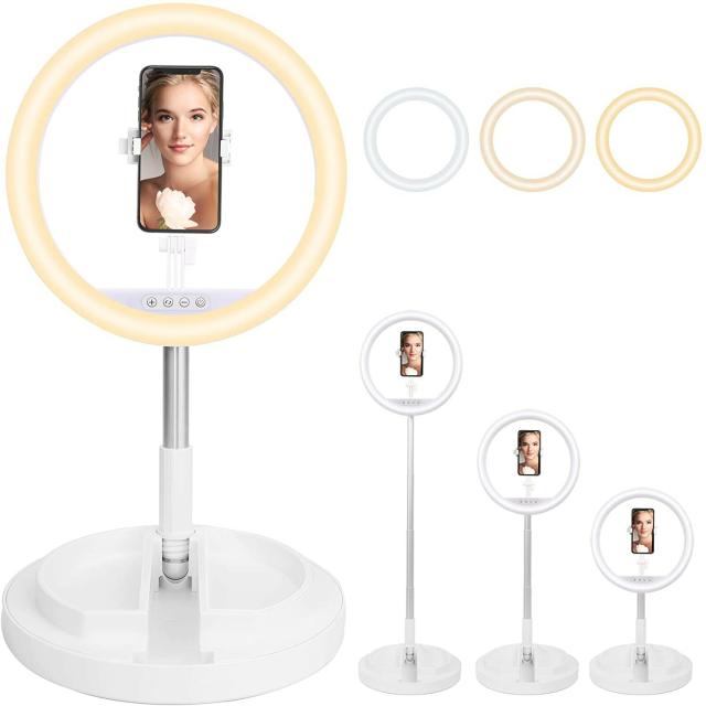 LEDリングライト 折畳み式 スタンド一体式 11インチ 組立て簡単 収納省スペース 携帯便利 led 自撮りライト USBライト 撮影用 照明 高輝度2900k-6000k 三色モード 10段調光 卓上スタンド テレワーク Web会議 Youtubeビデオ TIKTOK 自撮り 美容化粧 カメラ撮影に適用