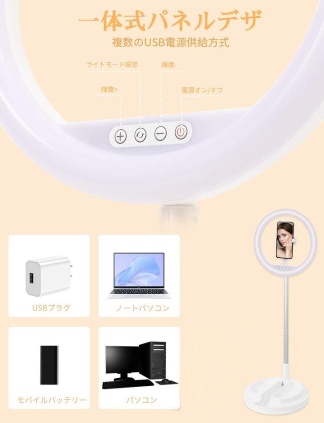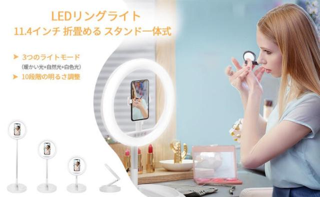 LEDリングライト 折畳み式 スタンド一体式 11インチ 組立て簡単 収納省スペース 携帯便利 led 自撮りライト USBライト 撮影用 照明 高輝度2900k-6000k 三色モード 10段調光