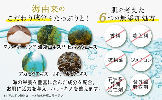マリンコラーゲン※2、海藻エキス※1、ヒバマタエキス、アカモクエキス、オキナワモズクエキス