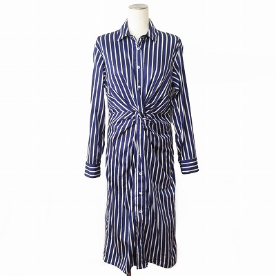 【中古】ザラウーマン ZARA WOMAN ワンピース シャツワンピ ロング ストライプ 長袖 XS 青 ブルー レディース