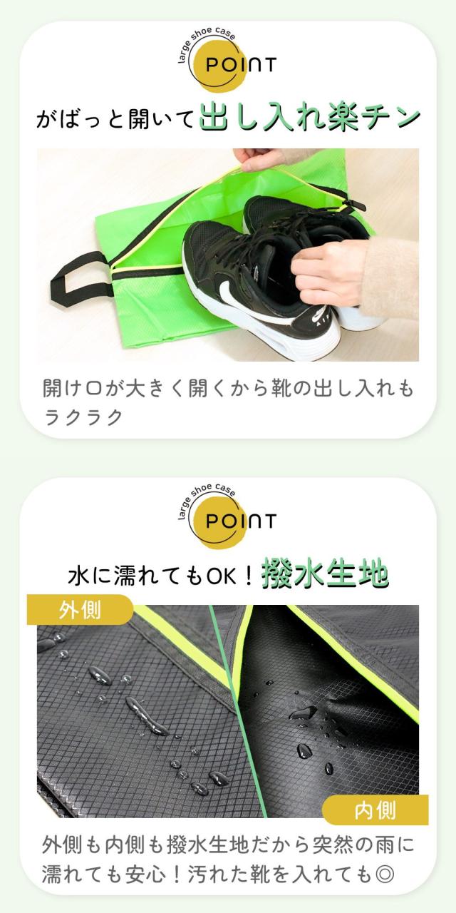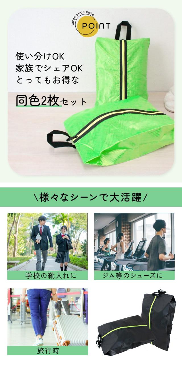 シューズケース/2枚セット/大きめ/29cmまで対応/撥水/ファスナー/シンプル/コンパクト/持ち運び/メンズ/レディース/男女兼用/収納ケース/靴/ブーツ/衣替え/スニーカー/ハイカット/ローファー/ビジネスシューズ/ジム/トレーニング/旅行/バッグインバッグ/外履き/内履き/卒業式/始業式/アウトドア/折りたたみ/不透明/上履き/室内履き/出し入れ楽/靴袋/靴入れ/靴収納/くつ/シューズバッグ/