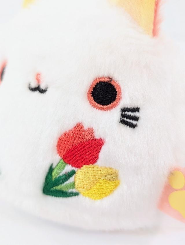 花がモチーフの「花ねこだんご」。カラフルなチューリップの刺繍がポイント♪