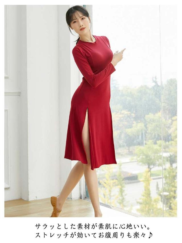 ラテンドレス カジュアルワンピース ダンス衣装 舞台 ワンピース 優美ワンピース ダンスウェア イベント ダンスウエア 社交ダンス ダンス衣装 フラダンス ジャズダンス 発表会 ロングワンピース 社交ダンス クラブ ブラック ワインレッド ネイビー レッド