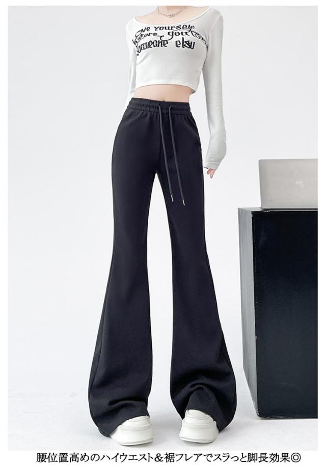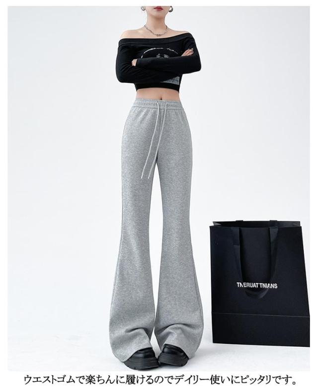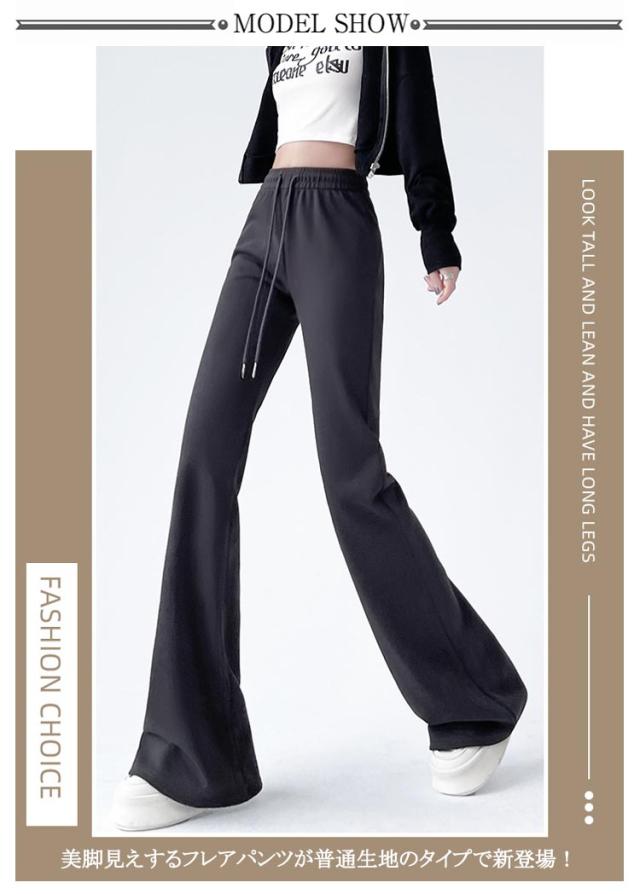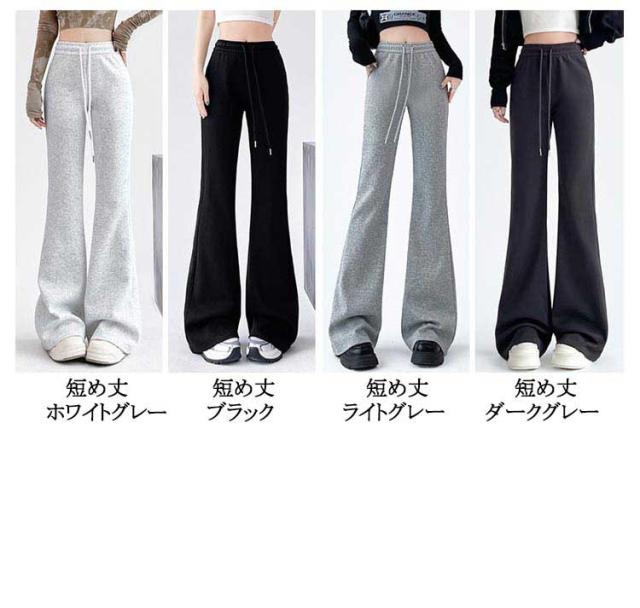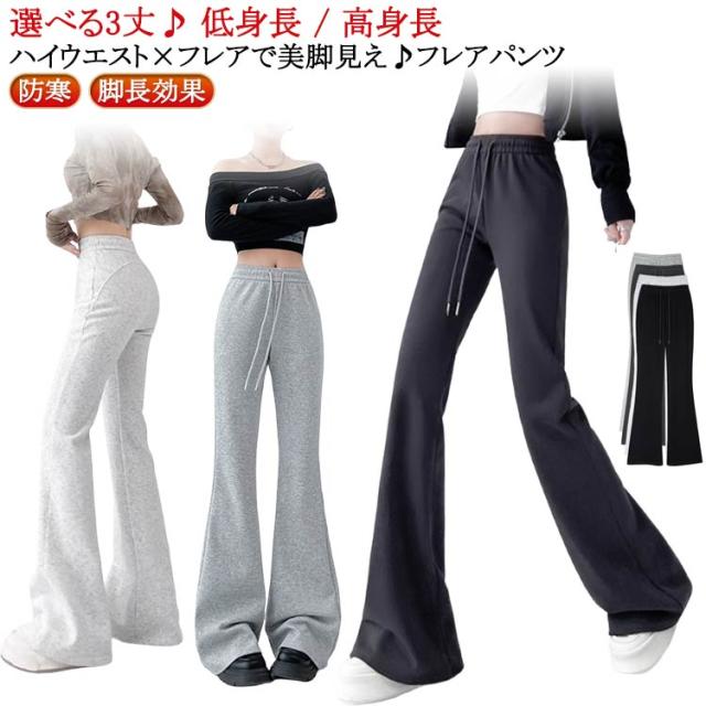 レディース レギパン 選べる3丈 春 秋冬 フレアパンツ レディースパンツ 春 低身長 細見え フレアパンツ リラックスパンツ ゆったり ボトムス ハイウエスト 脚長効果 美脚 レディース ウエストゴム ロングパンツ レディース 黒 グレー