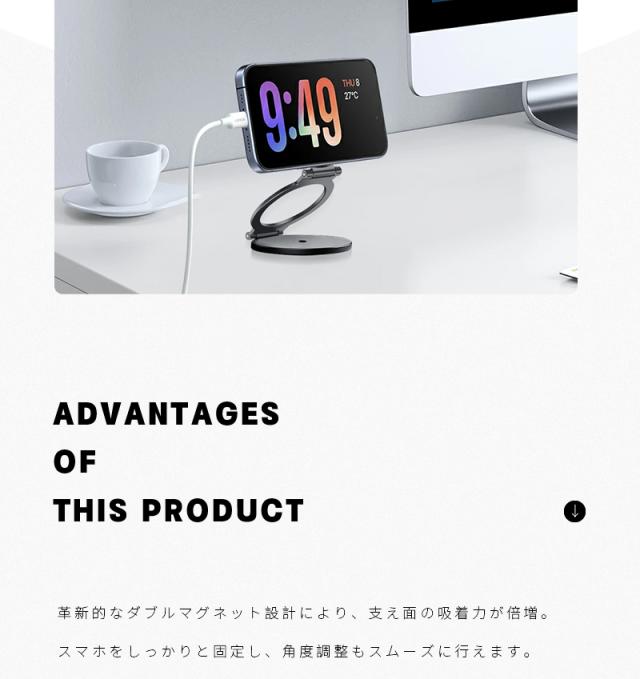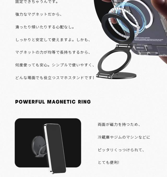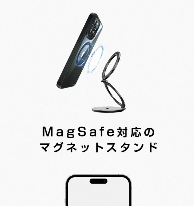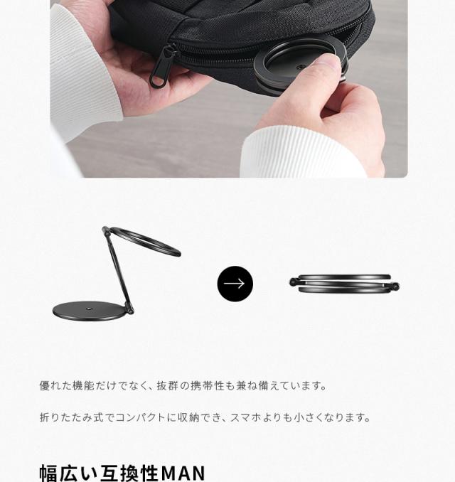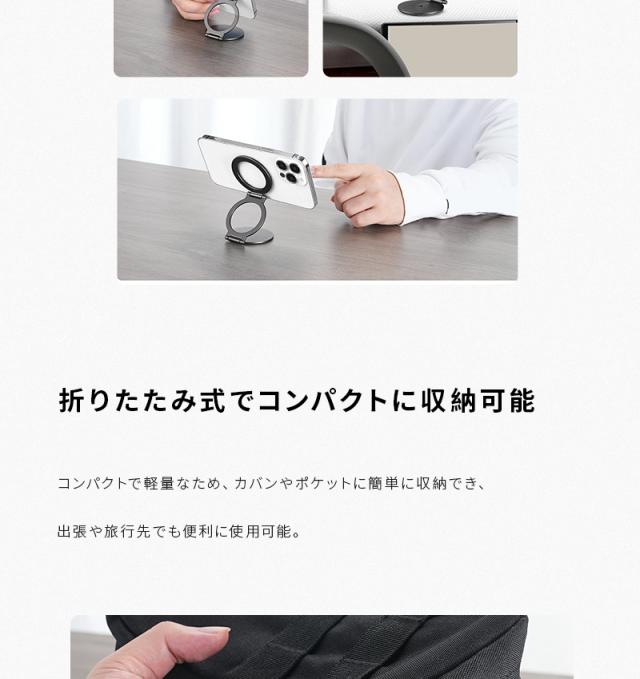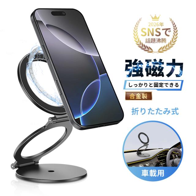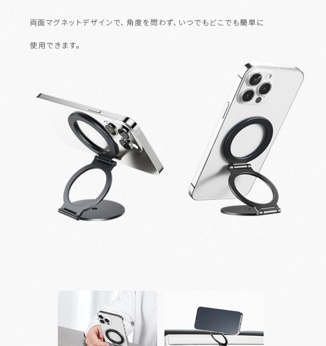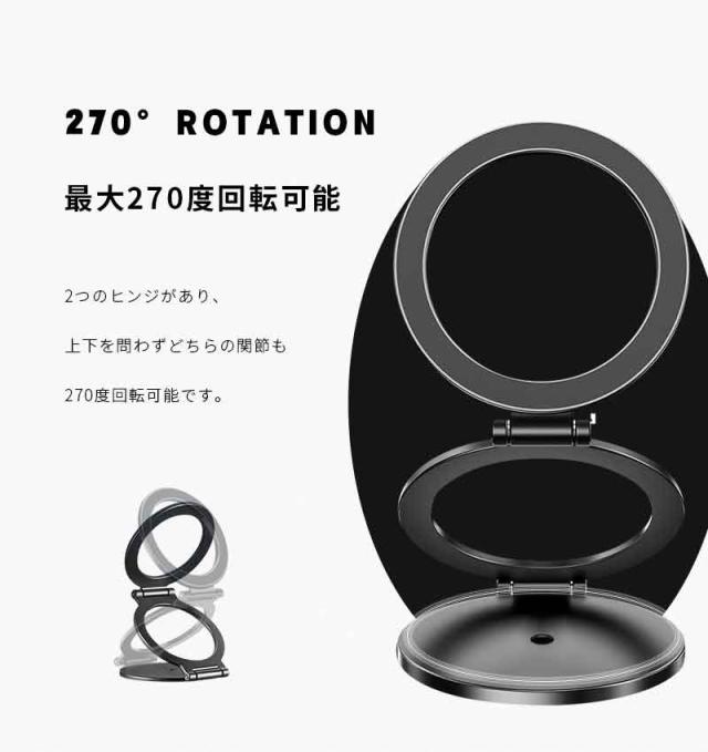 【両面マグネット式】スマホスタンド 折りたたみ タブレットスタンド 磁気スマホホルダー オシャレ 270°回転 iPhone 16/15/14/13/12/11シリーズ対応 Android ipad 角度調整 可動軸 粘着シート付き 軽量 高さ調整 合金製 コンパクト 落下防止 高級感 持ち運び便利 倒れない