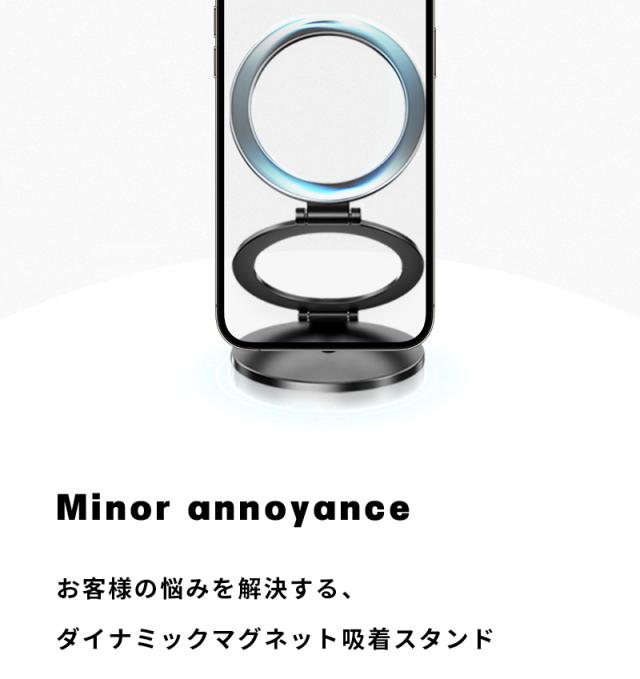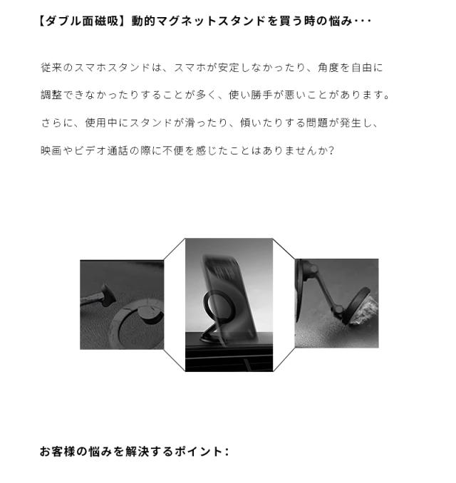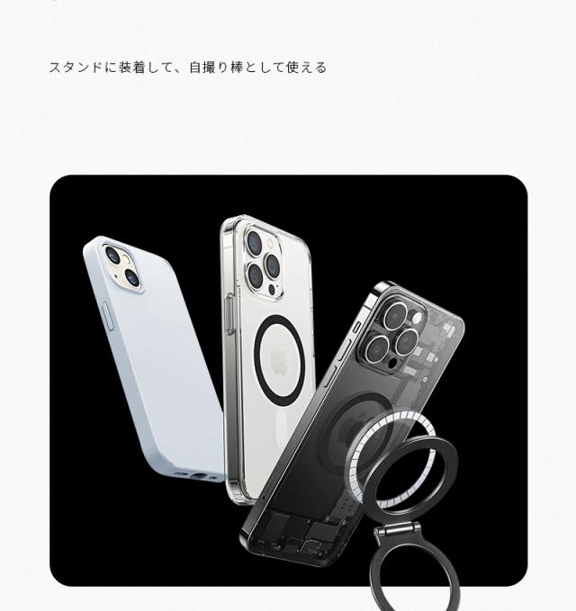 両面に強力な磁石が内蔵されており、スマホに簡単に吸着でき、両面でも使用可能です。冷蔵庫に取り付けてレシピをチェックしたり、車載ホルダーにも簡単に取り付けて車内で活躍します。