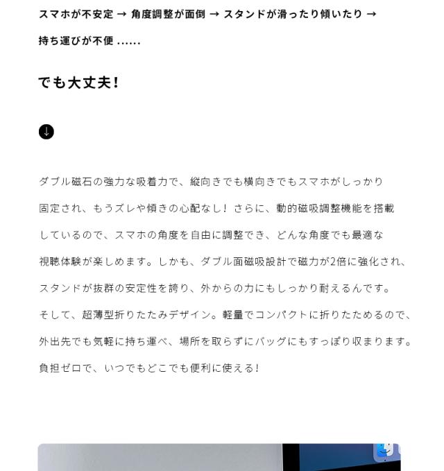 - 磁力がめっちゃ強いです!結構振っても携帯が落ちません! 持った感じは、丈夫なせいか思ったより重いと感じたのと開閉がしづらいです。