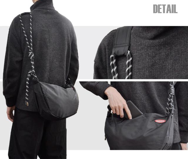 ショルダー バッグ 三日月型 斜めがけ おしゃれ 大容量 ボディバッグ 撥水 軽量 ロープ スリングバッグ 餃子バッグ メンズ