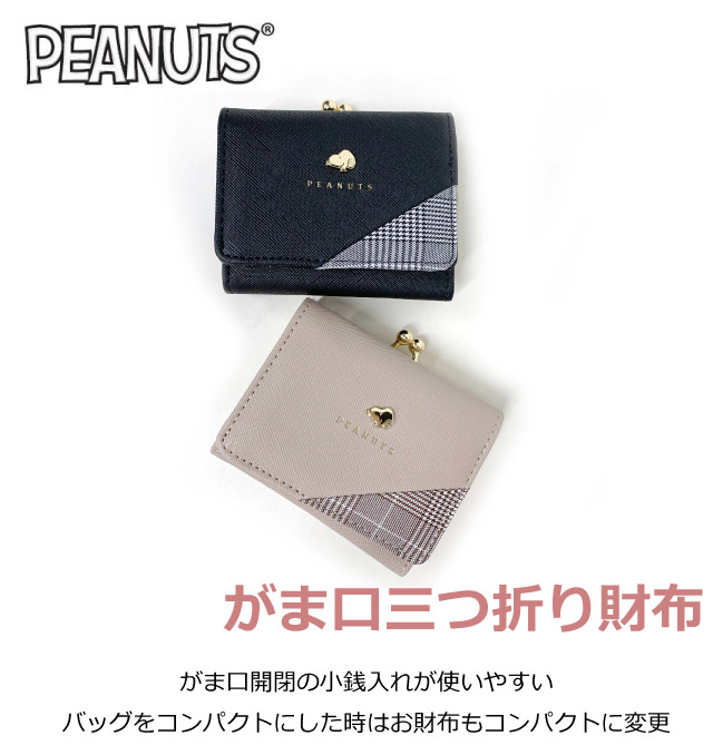 キッズ 財布 スヌーピー がま口 SNOOPY チェック 三つ折り財布 75089 レディース 中学生 高学年 かわいい 3つ折り 口金 高校生 小学生 女の子 子供 大人 かわいい 財布 2つ折り財布 サイフ お財布 ミニ財布 修学旅行 誕生日 クリスマス プレゼント 大人向け 黒 小学生 女子