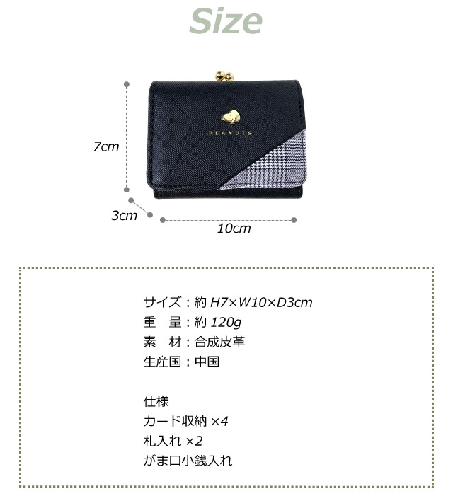 ![]() ![]() ![]() ![]() ![]() ・SNOOY(スヌーピー) チェック柄がおしゃれなミニ財布。 大人も子供も使えるシンプルデザイン。 小学生・中学生・高校生の女の子に人気で、お誕生日やクリスマス等のプレゼントにもおすすめです。