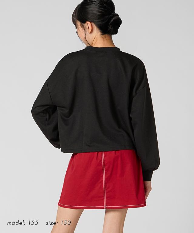 ビッグロゴアップリケが印象的なショート丈トレーナーです ■デザイン ・トレンドのゆったりシルエット+ショート丈 ・ロゴアップリケは刺しゅうがあしらわれていてオシャレ ・右裾にはさりげないチケット ■素材 ・ポンチ素材なので動きやすくロングシーズン着用できる ■おすすめのスタイリング ・シンプルなデザインなのでどんなアイテムにも合わせやすい ・動きやすいので通学コーデにも