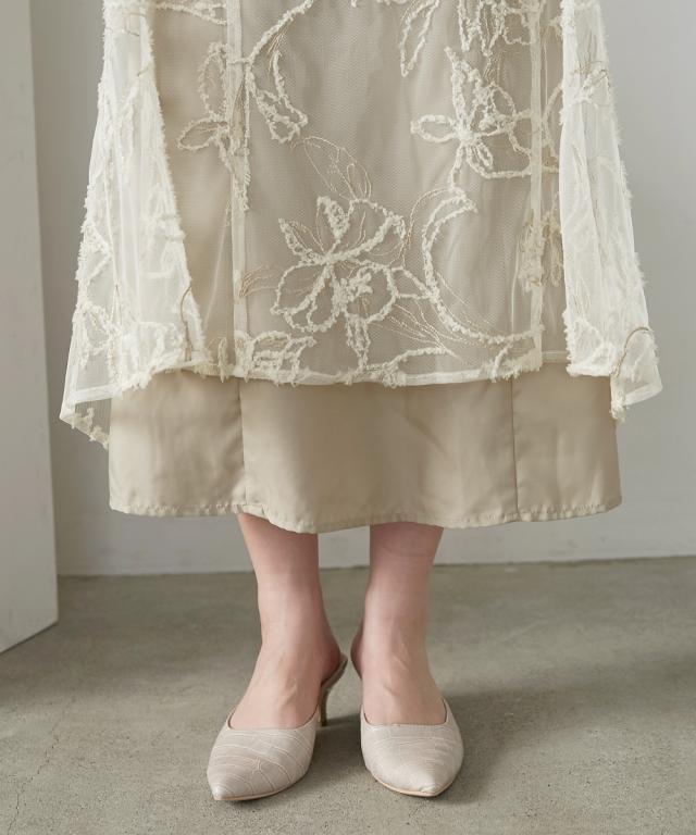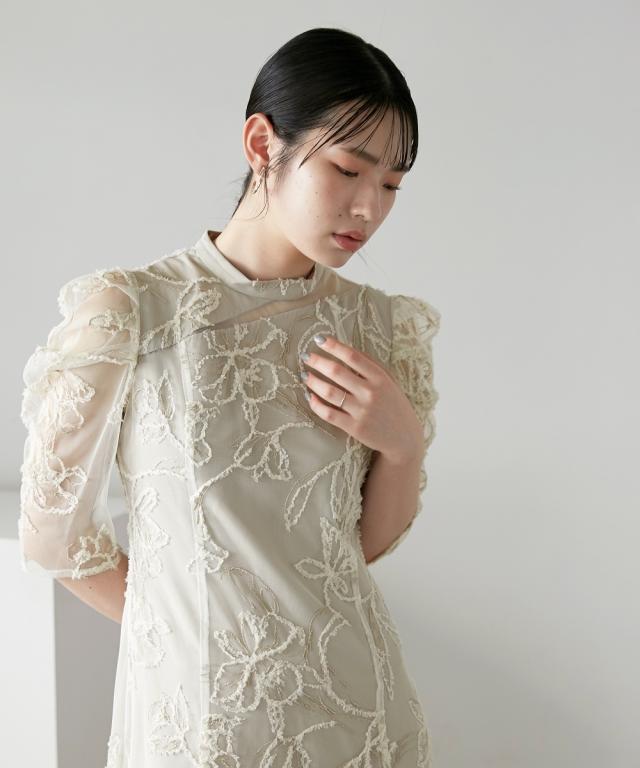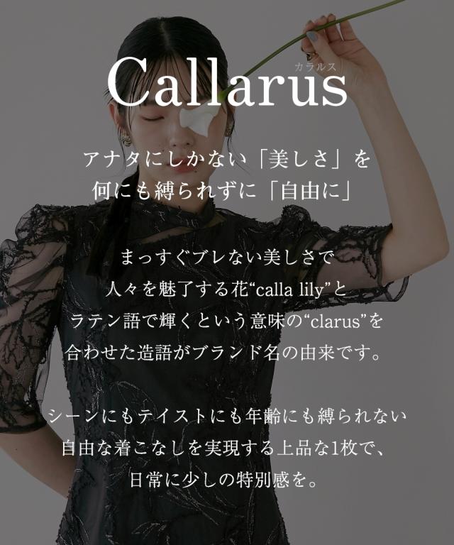 【Callarus(カラルス)】 〜アナタにしかない「美しさ」を何にも縛られずに「自由に」〜 まっすぐブレない美しさで人々を魅了する花“calla lily”と ラテン語で輝くという意味の“clarus”を合わせた造語がブランド名の由来です。 シーンにもテイストにも年齢にも縛られない 自由な着こなしを実現する上品な1枚で、日常に少しの特別感を。 ◆商品説明 DRESSは女性を最上級に美しく見せる服 結婚式だけなく、様々なシーンで自分らしさを表現していただきたい想いで企画・提案 フリンジアクセントラインの素材感とラメ入り刺繍が華やかな印象を演出 チュール刺繍レース生地を全身に使用した上品なワンピースドレス 首元のカッティング風デザイン部分はチュールを被せた程よい肌見せで、着用しやすくトレンドライクな仕上がりに 上品なシアー感が、こなれた着こなしを演出 袖にはギャザーを取り入れ、可愛いポイントをプラス 自分にしかない美しさを演出してくれるオケージョンドレス シーンを選ばない自由な着こなしを楽しんでください ◆体型カバーポイント 気になる二の腕を繊細にカバー ロング丈で上品に膝見えをカバー ウエストゴム入りで、楽な着心地を追求