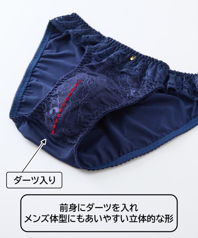 可愛いショーツを実際に履いてみたい、そんな願いをかなえるショーツです。ダーツを入れることでより男性体型にあいやすい立体的な形に。脇にあしらったレースがかわいい、誰でもはきやすいデザインショーツです。生地もストレッチがきいていて、フィット感も抜群です。(こちらのショーツはお揃いのブラジャーのおつくりはありません)