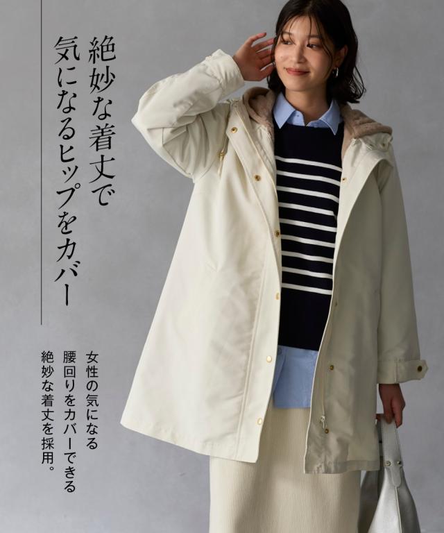 コート アウター レディース 裏フェイクファーライナー付モッズ はっ水 静電気防止テープ付 S/M ニッセン nissen