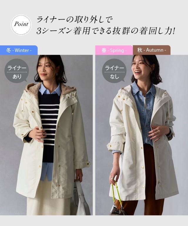 品質=[本体・ライナー]ポリエステル100% [裏地]有(本体袖部) 前ファスナー 前ボタン開き 袖部ボタン調整可 ポケット両脇 ライナーは取り外しできます。 透け感:なし 伸縮性:なし 生地の厚み:普通 光沢感:なし 裏地:あり ポケット:あり 季節:春・秋・冬(ライナーのお取り外しで調整できます) シルエット:ややゆったり 原産国:中国製(企画デザインは日本) 備考:手洗い ※単位:cm ※サイズの誤差は多少発生します。 ※仕立てサイズとは、実際に商品を測った時のサイズのことです。