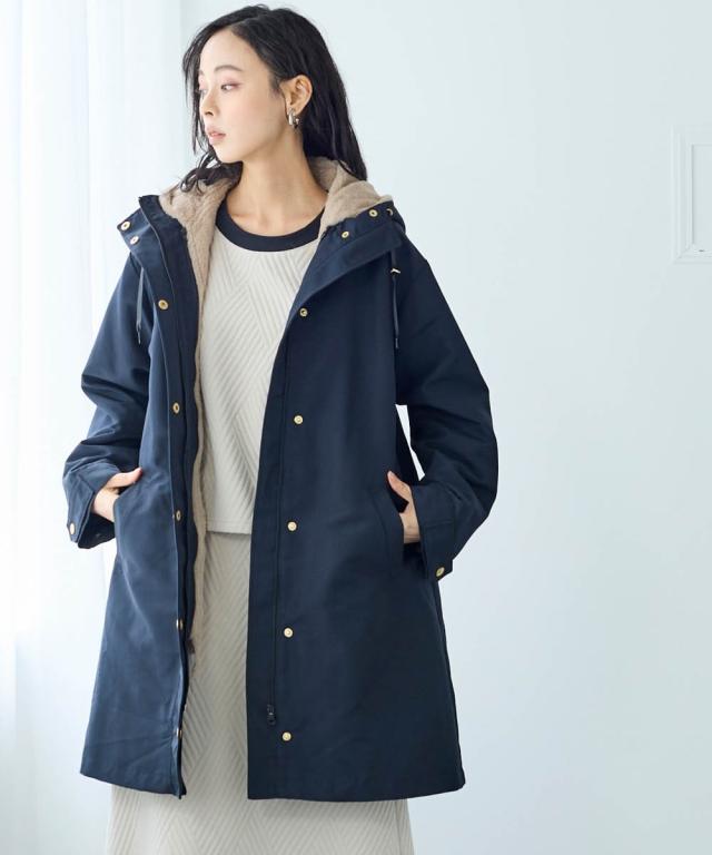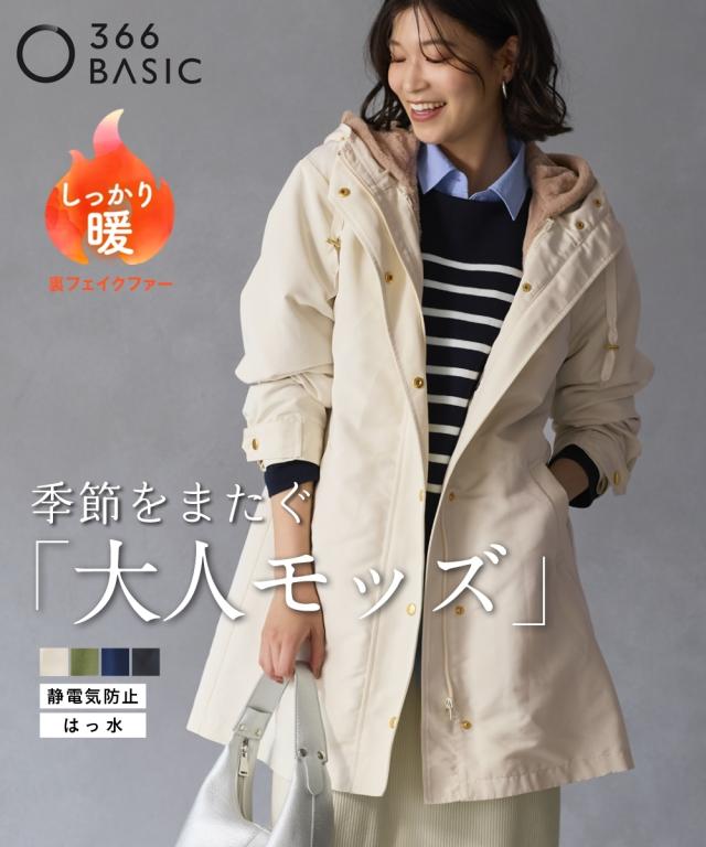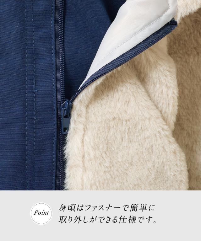 コート アウター レディース 裏フェイクファーライナー付モッズ はっ水 静電気防止テープ付 有 L/LL/3L