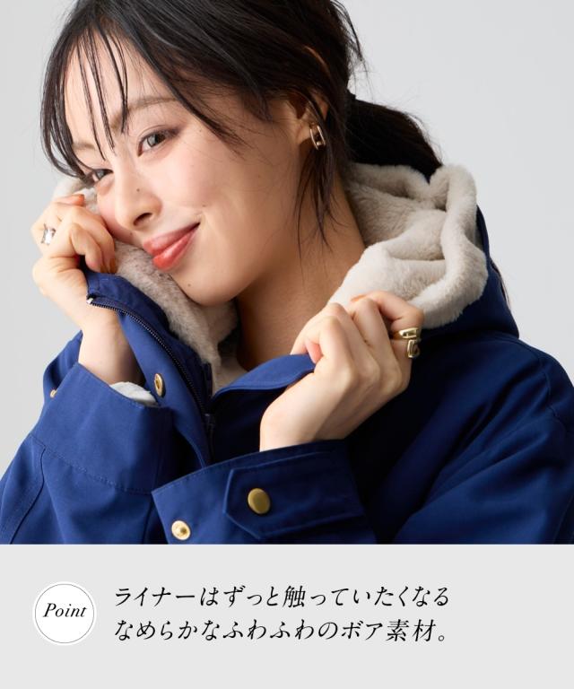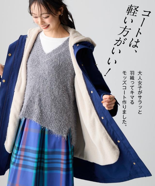 〜スマイルさんの「ほしい」や「あったらうれしいな」を集めたモッズコート作りました〜 ■デザイン 程よく太ももまでカバーしてくれる丈のモッズコート。 ウエストは絞らず自然なシルエット あたたかなライナーはふわふわサラサラの肌触り。 ファスナーで取り外せると気候によって調整できるし、 なんといってもお手入れするときも楽ですよね INはゆるっとしたデザインがはやる今だから袖下のサイズを見直し ご要望の声にあったライナーのお袖をなくしました なので動きやすさもプラスされ楽ちん。 絶対必要なポケットも装備 気を付けていても乾燥している時期にはつらい静電気。 少しでも軽減できるようにテープを縫い込みました。 アウターははっ水加工を施しているので急な小雨や雪には強い味方ですね(完全防水ではありません) スマイルさんに「これ着たい」「買ってよかった」って笑顔になってもらいたい1枚です ■素材 表面感はごわつきの少ないポリエステル系にしました。 着心地よく軽めに仕上がっています。 ライナーはふわふわの手触り。 これまでのモッズのズシ〜ンと重いイメージが一気に軽くなりました。 ■おすすめのスタイリング カジュアルシーンでは軽めのチェックシャツとデニ