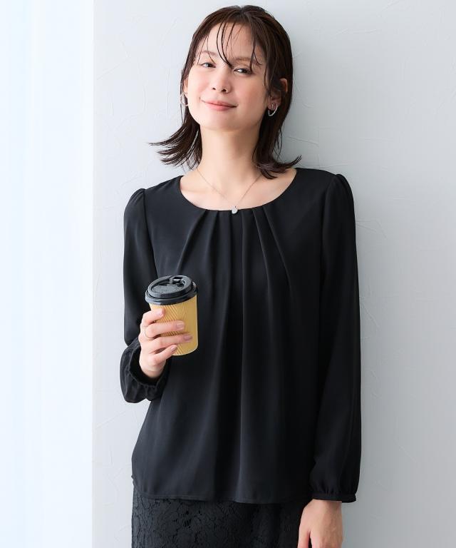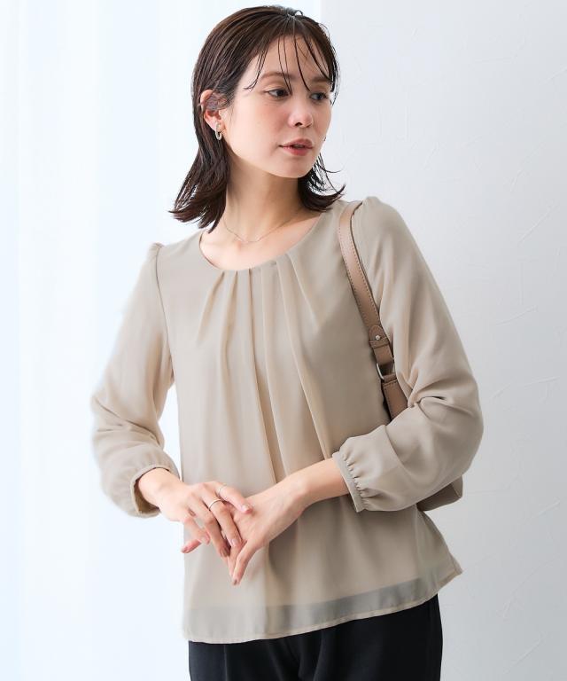 【シンプルなのにほんのり華やぐフロントタックブラウス】カットソー素材裏地付きだから、ほんのりシアーなシフォン素材をたっぷり楽しんで。 ■ポイント ・働く服改革「オフィス女子モニター」さんのご要望でつくったブラウス。 ・人気のシフォン前タックブラウスがゴムなし裾になって登場。 ・大きいサイズも新たに展開しました。 ■デザイン ・着映えながら、ふんわり体型カバーする胸もとのフロントタックデザイン。 ・ゴムのないフラットな裾。 ・透けにくいカットソー裏地付き。 ■素材 ・表地は上品な質感でオフィス使いにぴったりのシフォン素材。 ・裏地は着心地のいいカットソー素材。 ・UVカット機能付き。 ・洗濯機洗いOKなお手入れ簡単素材。 ■おすすめのスタイリング ・胸もとのタックを生かしたジャケットインがおすすめ。 ・パンツでもスカートでも、ボトムを選ばずすっきり決まります。 〜7days Life Styling〜 仕事の日、休日、イベントの日まで、 働く女性の毎日を商品やコンテンツを通して、 自分らしく快適でいられる“働く服改革”をサポートします。