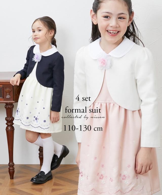 フォーマル スーツ 子供服 キッズ 卒園 入学 4点セット ボレロ + ブラウス ワンピース +コサージュ 女の子 入卒 入学式 身長110/120/130cm ニッセン nissen