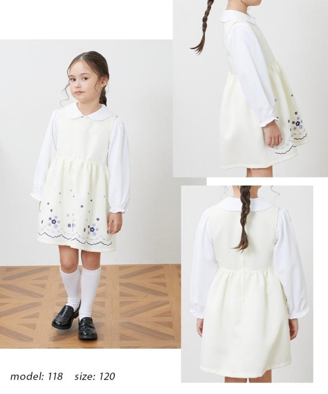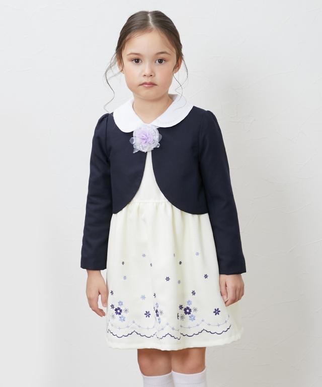 卒園式や入学式、冠婚葬祭におすすめ。 スカート部分の刺しゅうがポイントのワンピースにブラウス・ボレロをセットしたフォーマルウェアアンサンブルセット コサージュもセットになっていてピンで着脱可能 ■デザイン ・フォーマルシーンにピッタリのスカート部分に刺しゅうのはいったワンピース ・白い丸衿ブラウスがカワイイ&上品さをプラス ・しっかりした生地感で、シルエットもばっちり決まる ■素材 ・しっかりとした上質な素材