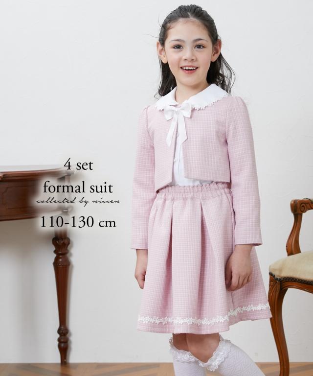 フォーマル スーツ 子供服 キッズ 卒園 入学 4点セット ボレロ + ブラウス スカート +リボン 女の子 入卒 入学式 卒業式 身長110/120/130cm ニッセン nissen