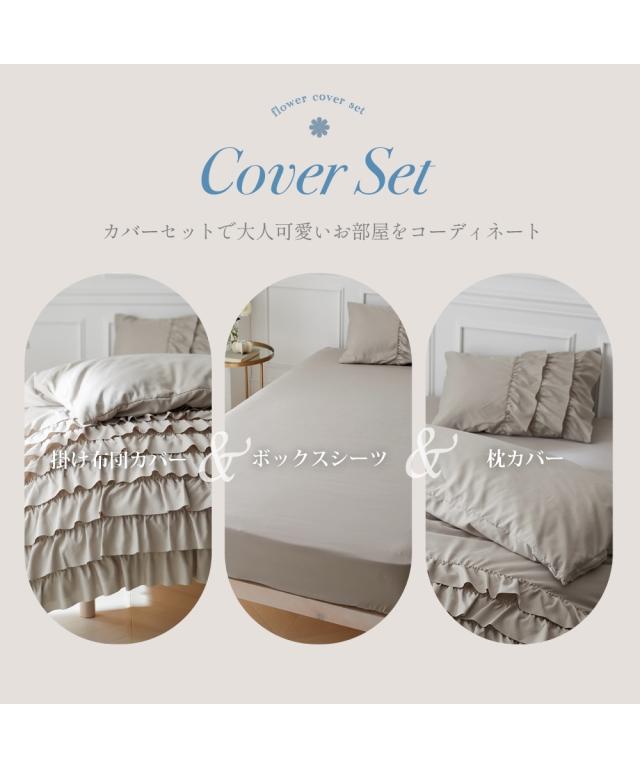 高級感のあるフリル カバーセットで大人可愛いお部屋をコーディネート 掛け布団カバー、ボックスシーツ、枕カバーのセット。 セットなのでよりまとまりのある空間になります。 大人可愛いインテリア、フェミニン・エレガントテイスト、ホテルスタイルが好きな方におすすめです。 【NEW BRAND DEBUT】 この度、新しいブランドが誕生しました。 fleu;e(フルーエ) [BRAND CONCEPT] 毎日を可愛く、毎日を自分らしく。 あなたはどんな時間が好きですか 友人や家族と団らんするとき カフェでお気に入りのドリンクを飲むとき 花を愛でるとき その一瞬一瞬を過ごす時間によって居心地を感じ、嗜好に変化します。 私たちは好みや個性を尊重し、心ときめくデザインや夢中になるラインナップを通して、 お客様の「好き」を形にして、あなたがあなたらしく暮らせる時間を提供します。 完璧でなくても大丈夫。 凛とした花のように、ありのままの自分に自信を持ち、 胸を張って、毎日が自分らしく輝けるように私たちは寄り添います。 【おすすめポイント】 point1 贅沢なティアードフリル 掛け布団カバーは8段、枕カバーは3段のフリルを贅沢にあしらい、ミ