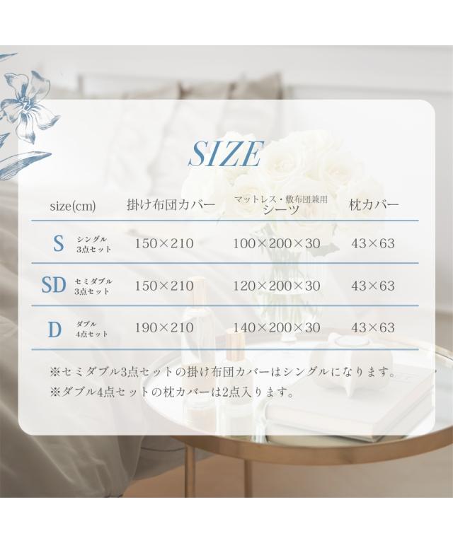 ※セミダブル3点セットの掛カバーはシングルサイズをセットしています。