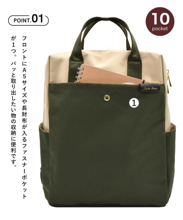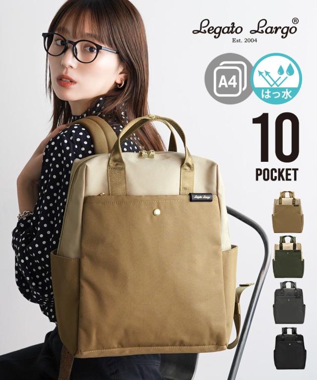 Legato Largo(レガートラルゴ)10ポケットはっ水「楽&きれい」トート型リュックサック(A4対応)