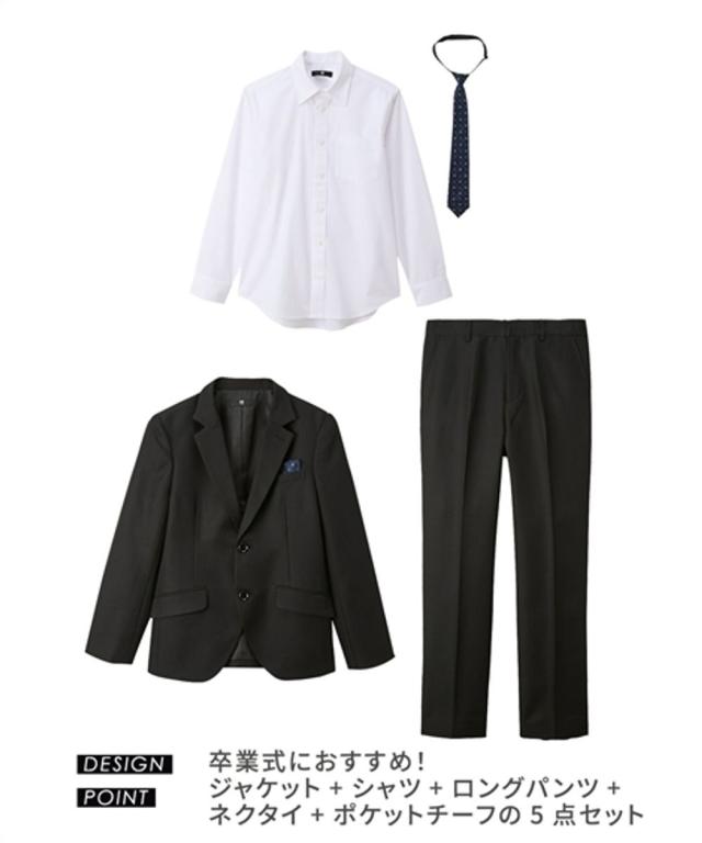 フォーマル スーツ 子供服 キッズ 卒業 5点セット 二つボタン ジャケット + シャツ パンツ ネクタイ +ポケット チーフ 男の子 ニッセン nissen