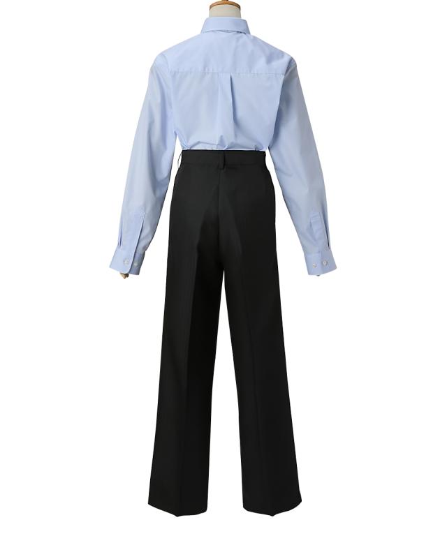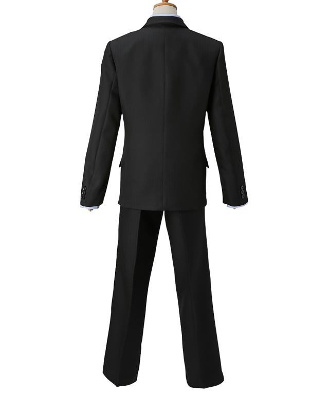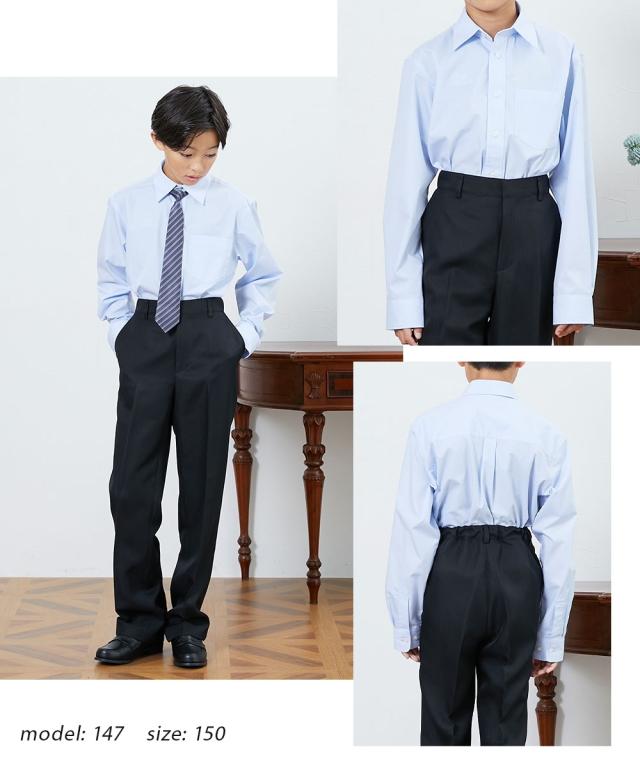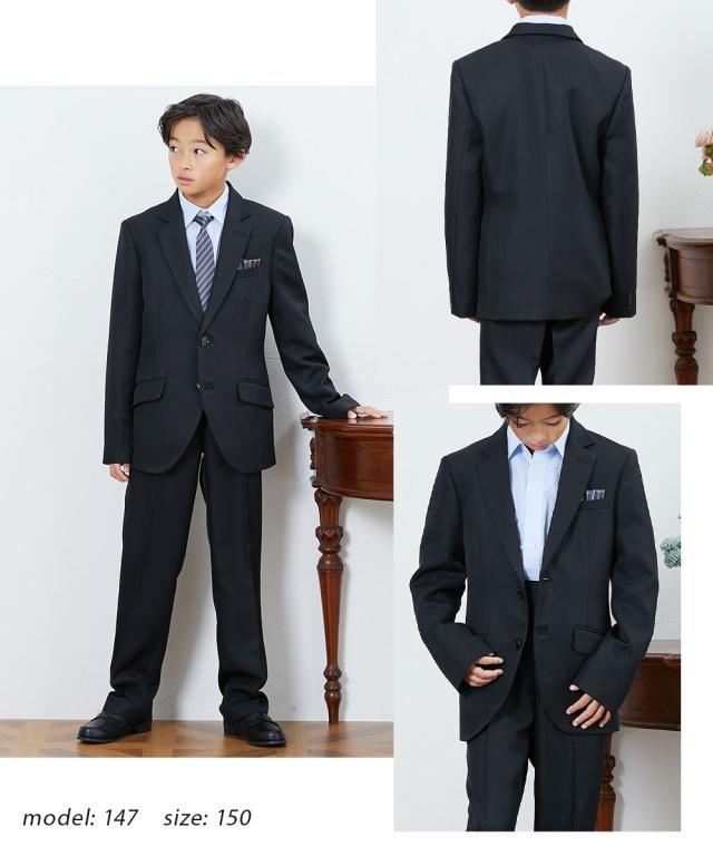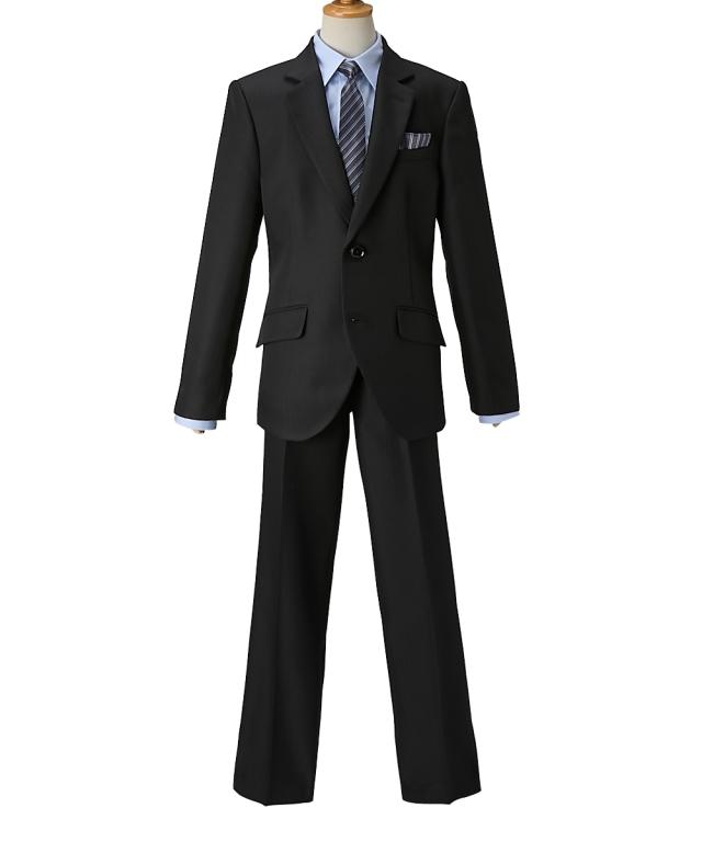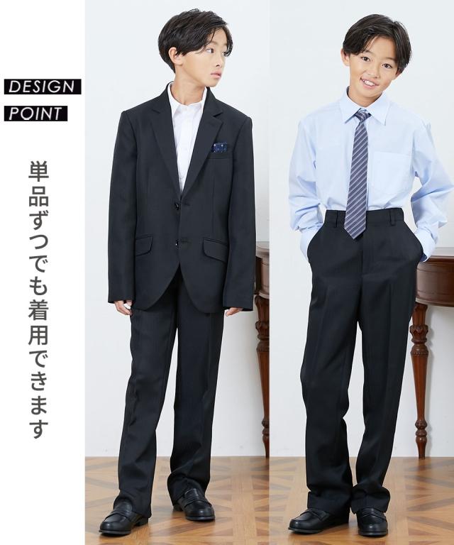 5点セットでコーディネートに困らない 大人のように見えてかっこいい、本格的なフォーマルスーツです。 ■デザイン ・王道のシンプルなデザイン ・簡単に取り付けられるネクタイとポケットチーフできちんと感がアップ ・人気のブルー系のシャツ ・ウエストはアジャスター付きでサイズ調節が可能 ■素材 ・少し光沢のあるしっかりとした上質な素材 ■おすすめのスタイリング ・衿付きシャツを合わせてフォーマルスタイルがおススメ