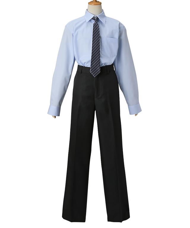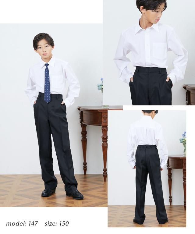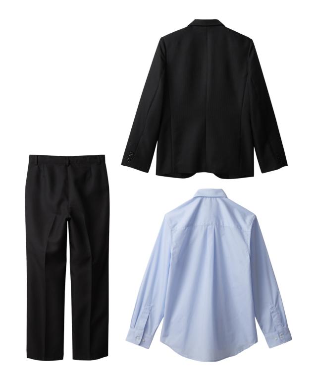 5点セットでコーディネートに困らない 大人のように見えてかっこいい、本格的なフォーマルスーツです。 ■デザイン ・王道のシンプルなデザイン ・簡単に取り付けられるネクタイとポケットチーフできちんと感がアップ ・人気のブルー系のシャツ ・ウエストはアジャスター付きでサイズ調節が可能 ■素材 ・少し光沢のあるしっかりとした上質な素材 ■おすすめのスタイリング ・衿付きシャツを合わせてフォーマルスタイルがおススメ