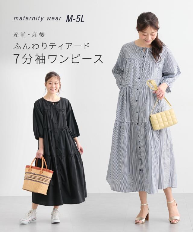 マタニティ ワンピース 授乳服 ママ ウェア ふんわりティアード7分袖 産前 産後 産前 産後 M/L ニッセン nissen