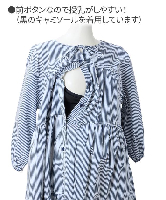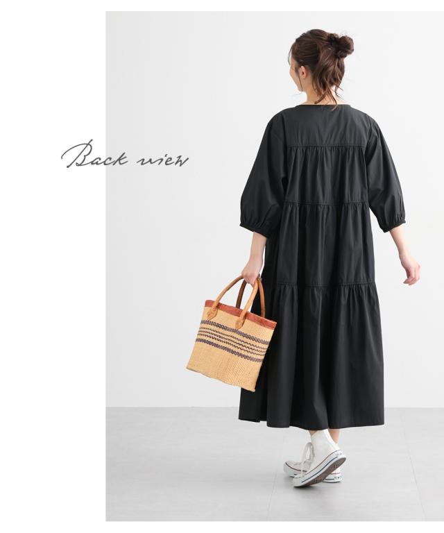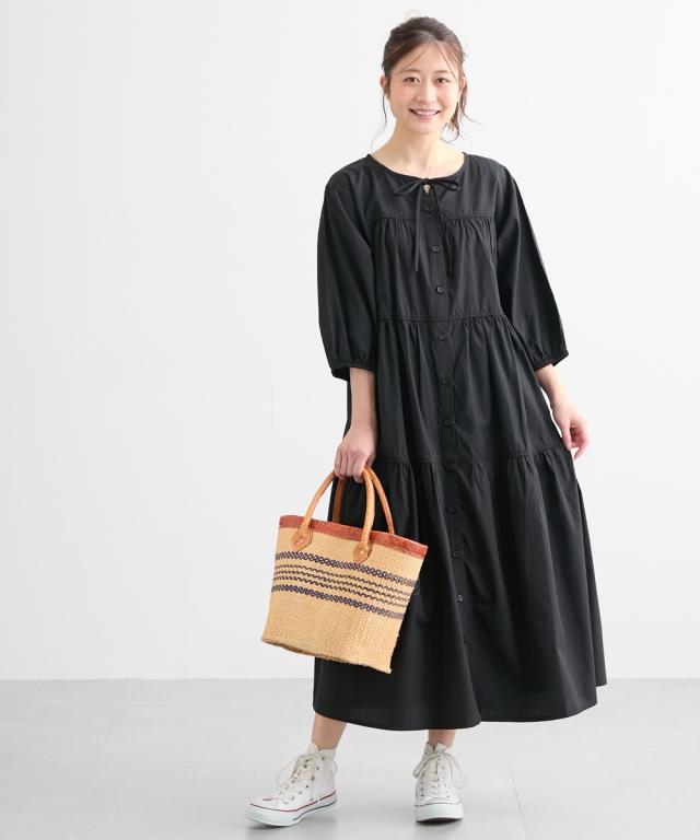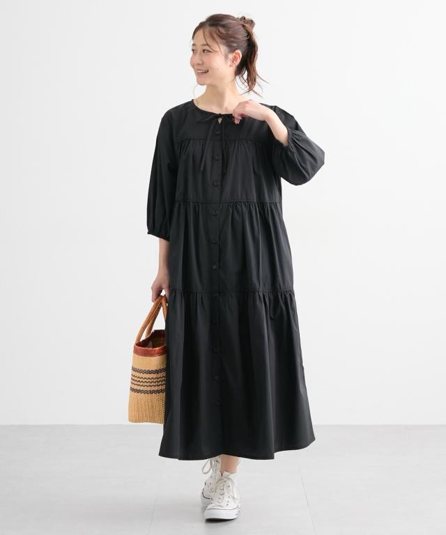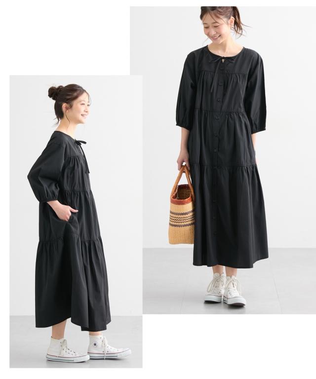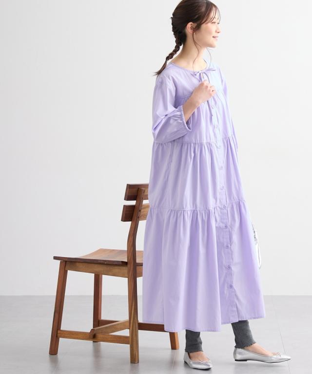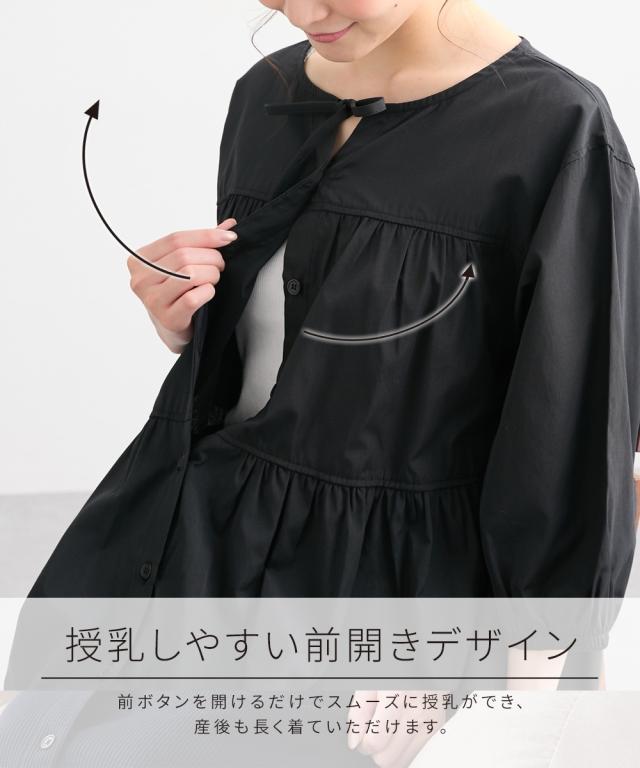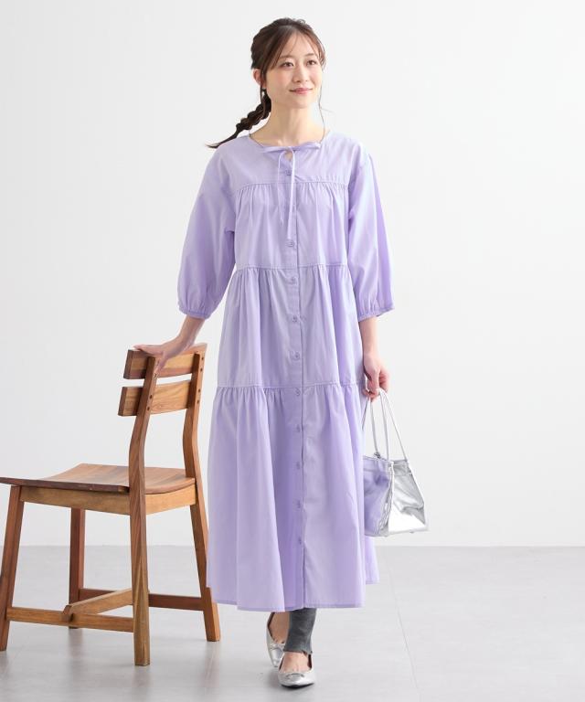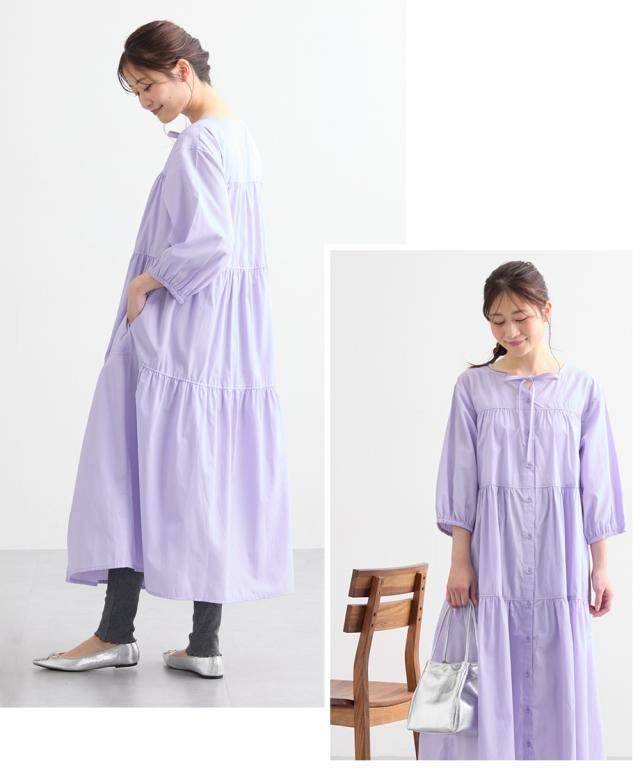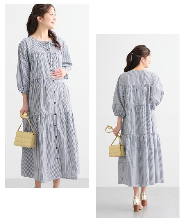 ふんわりとしたティアードがかわいい、七分袖のマタニティワンピースです。 ■design ・体型をカバーできる、ふわっと広がるシルエット ・歩くたびに裾が揺れてきれいなティアードデザイン ・胸元のリボンがかわいいアクセント ■point ・授乳は前ボタンをあけて授乳ができます。 特別な授乳口がないので、マタニティ期や卒乳後も普通のワンピースとして長く着られます ・両脇にポケットがあるので、ガーゼやハンカチなど、ちょっとした小物が入れられて便利です。 ■fabric ・綿混の織物生地で、さらっと爽やかで軽い着心地 ・春夏秋向き ■maternity ・産前から産後に使う ・授乳機能付(前ボタン開き)