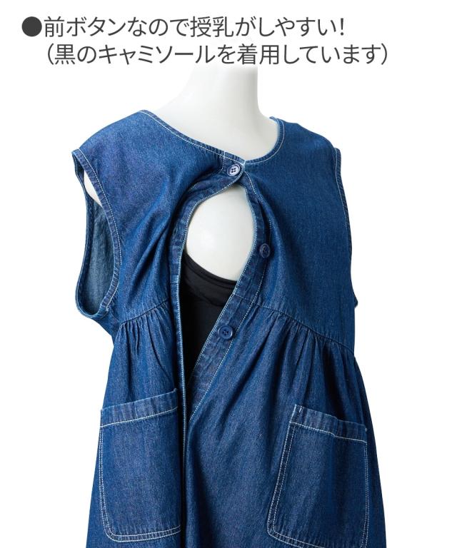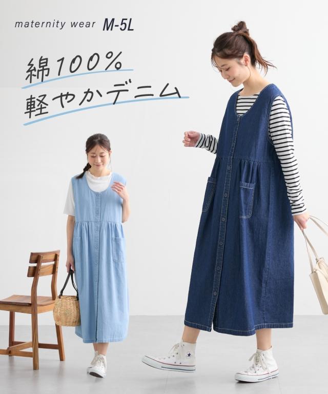 マタニティ ワンピース 授乳服 ママ ウェア 綿100% デニム ウエスト ギャザー 前開き ジャンパー スカート 産前 産後 産前 産後 M/L ニッセン nissen