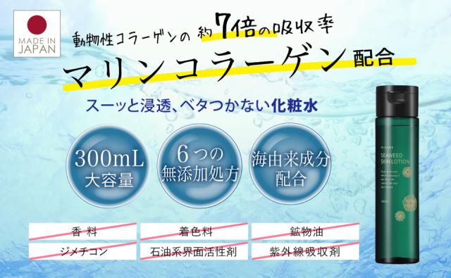 マリンコラーゲン〈加水分解コラーゲン〉と海藻成分をたっぷりと配合した大容量化粧水です。