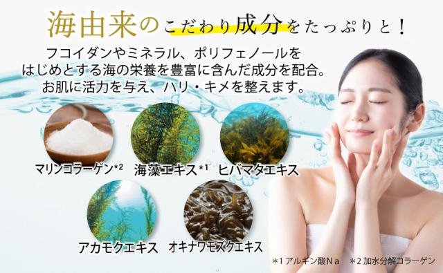 マリンコラーゲン※2、海藻エキス※1、ヒバマタエキス、アカモクエキス、オキナワモズクエキス