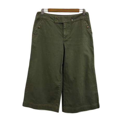 【中古】トレコトン パンツ ワイド ガウチョ クロップド フロントジップ スナップボタン 無地 1 緑 グリーン