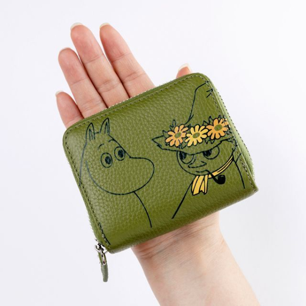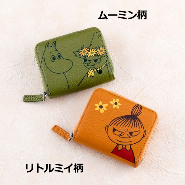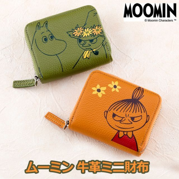 ムーミンで可愛く温かみのある暮らしを!世界中の人から愛される人気の「ムーミン牛革財布」です。フィンランドの作家であり画家のトーベ・ヤンソンによるムーミンシリーズが誕生したのは1945年。時代を超えて今なお、ちょっと哲学めいたキャラクター達が特に大人の女性に人気です。ムーミンファンにはたまらない絵柄がプリントされたお財布が登場です。手のひらに収まるコンパクトサイズ!小さいながらも大きく開いて使いやすいラウンドファスナー仕様。ファスナーを開くと、お札、カードが分けて入れることができる蛇腹ポケット、大きく開くボックス型小銭入れがあり、とても機能的。外側にはICカードも入れられるポケットも付いています。牛革を使用しているため、使い込めば味わい深い使用感になっていきます。