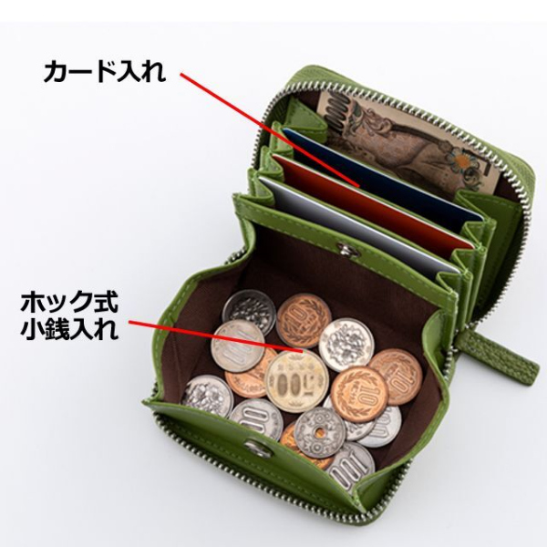 ■サイズ:(約)縦8×横10×マチ2.5cm■重さ:(約)96g■仕様:ファスナー開閉式、ホック式小銭入れ×1、オープンポケット×4、カード入れ×2■種類:ムーミン柄(グリーン)、リトルミイ柄(オレンジ)■材質:表地/牛革、裏地/ポリエステル■生産:中国